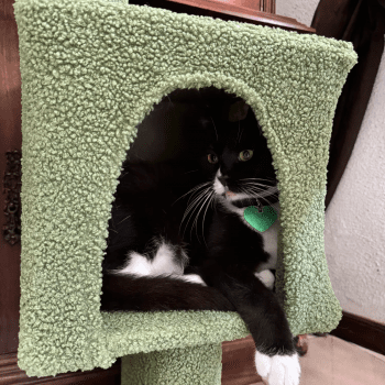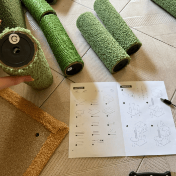 no more scratched furniture thanks to this cool cactus tower. both of my kittens are obsessed with it and i've noticed they're sleeping better too probably because they're getting so much during the day