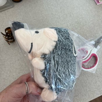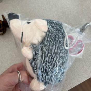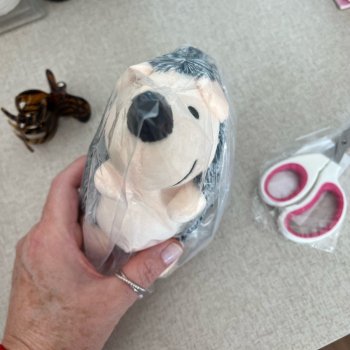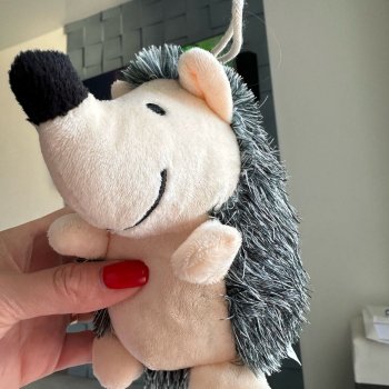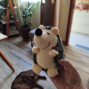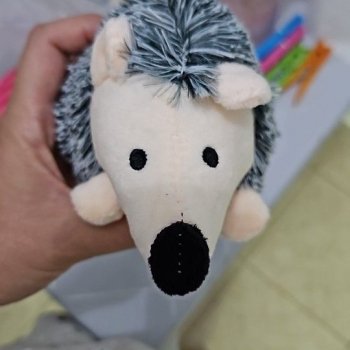 The toy is pleasant to the touch, there is a squeaker inside. I didn't even have time to take a picture normally. My zverg dragged the hedgehog away to play. He liked the toy.