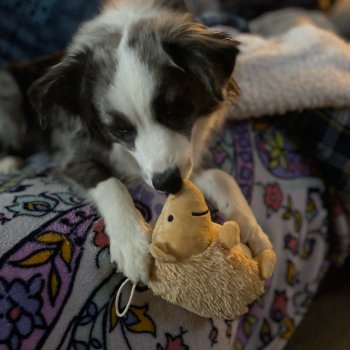 My dog enjoys this squeaky very much. He loves hedgehogs and makes a lot of noise at night when he finds them 🦔