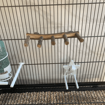 this wooden perch n chew toy has become an instant hit with our cockatiel he spends hours playing n chewing on it great product 👌