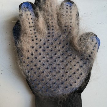 Comfortable glove, love the cat and me! Light, large, comfortable on the hand, soft pimps, do not injure the skin of the animal. I have a cat with a long hair, it takes off well